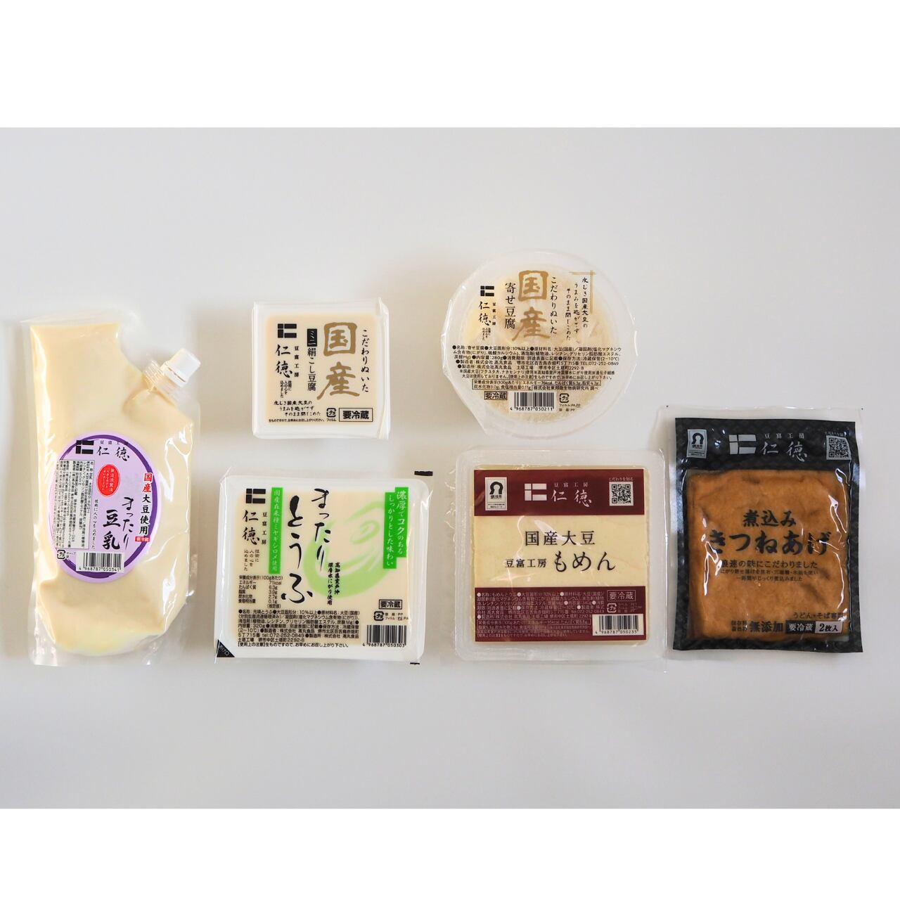 商品内容をリニューアル!!大豆の甘みが強い豆腐、豆乳、味付け揚げ(きつね揚げ)のセット。新商品のまったりとうふと夢まったり豆乳が入っています。